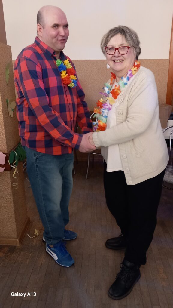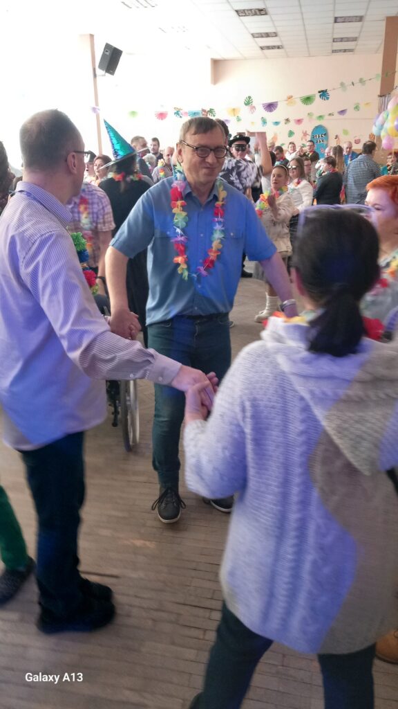 19.02.2025r. uczestnicy Dziennego Ośrodka Adaptacyjnego bawili się na Powiatowej Noworocznej Zabawie Karnawałowej w stylu hawajskim. Miło było spotkać się z naszymi przyjaciółmi, wspólnie zatańczyć i wziąć udział w konkursach. Jak zawsze organizatorzy stanęli na wysokości zadania i przygotowali super zabawę z konkursami i pysznym poczęstunkiem. Organizatorami spotkania byli: Powiatowe Centrum Pomocy Rodzinie i Powiatowa Społeczna Rada ds. Osób Niepełnosprawnych w Pabianicach oraz Polskie Stowarzyszenie na Rzecz Osób z Niepełnosprawnością Intelektualną Koło w Pabianicach.