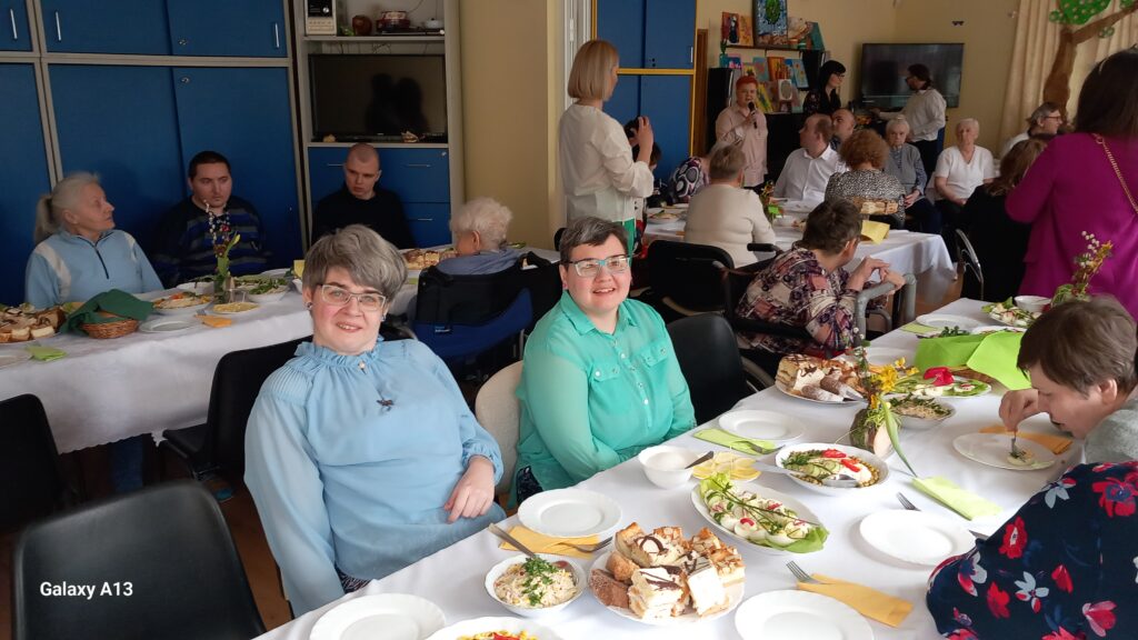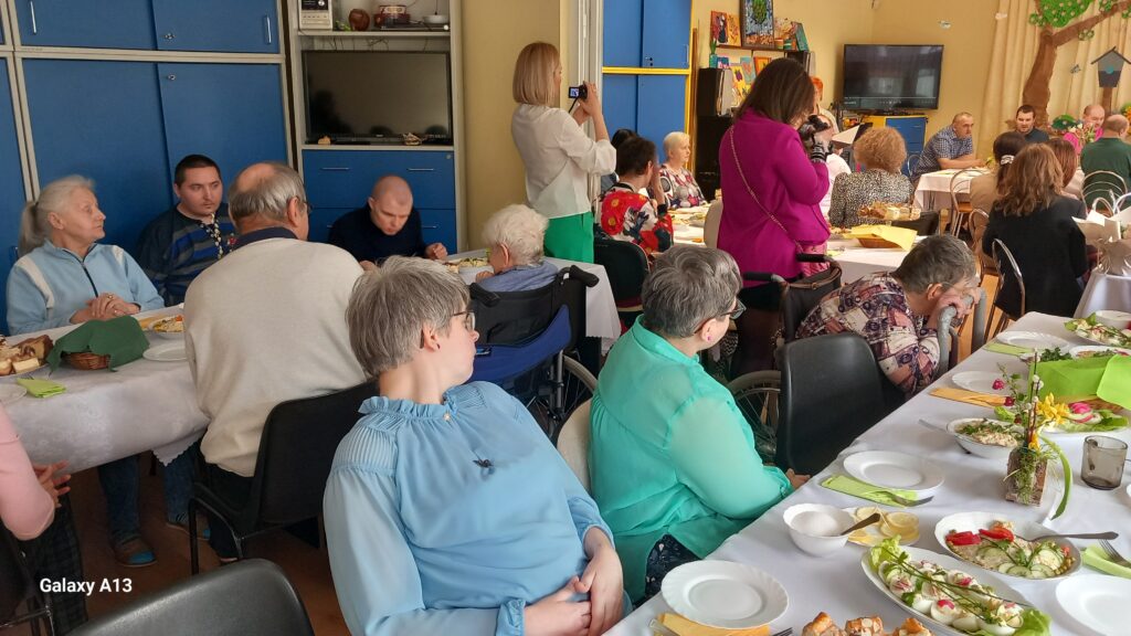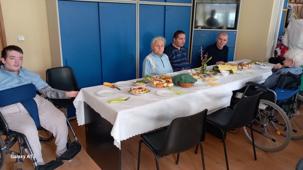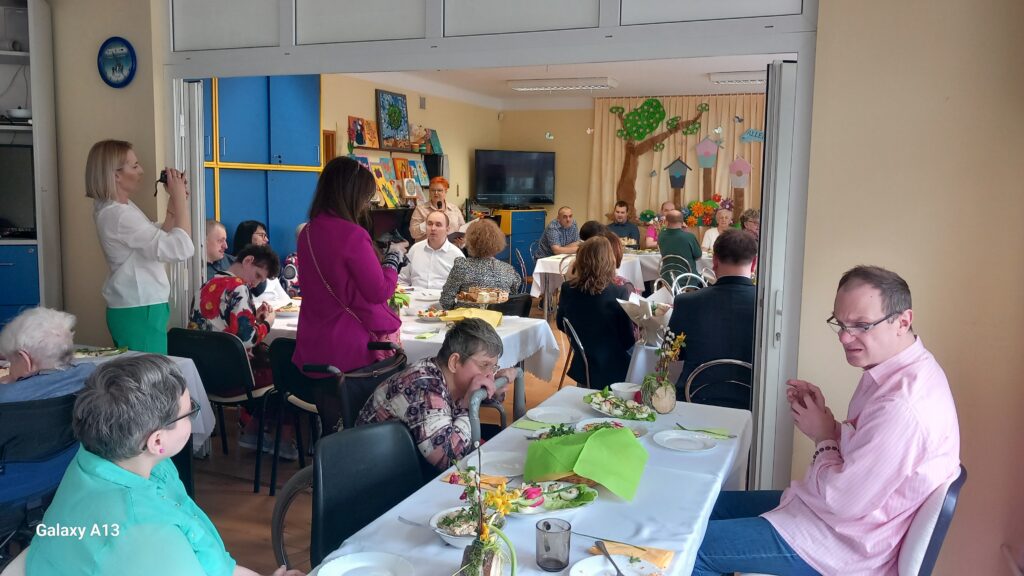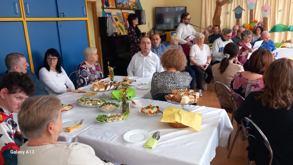 09.04.2025r. w naszej placówce odbyło się Śniadanie Wielkanocne, które rozpoczęło się występem słowno - muzycznym. Zaproszeni goście złożyli wszystkim świąteczne życzenia i wręczyli słodkie upominki dla uczestników. Wspólnie zasiedliśmy do stołów zastawionych wielkanocnymi potrawami. Jak co roku atmosfera była wyjątkowa, wprowadzająca w świąteczny nastrój.