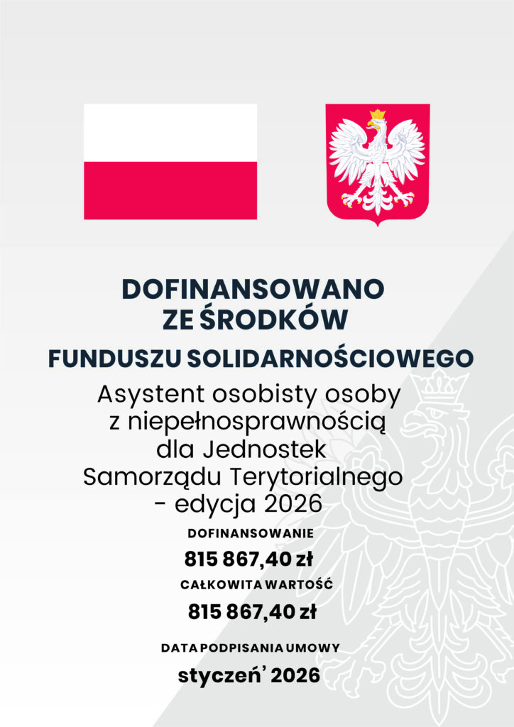 Miejskie Centrum Pomocy Społecznej w Pabianicach realizuje zadanie publiczne w ramach Programu Ministerstwa Rodziny i Polityki Społecznej „Asystent osobisty osoby z niepełnosprawnością” dla Jednostek Samorządu Terytorialnego edycja 2026, dofinansowanego z Funduszu Solidarnościowego.
